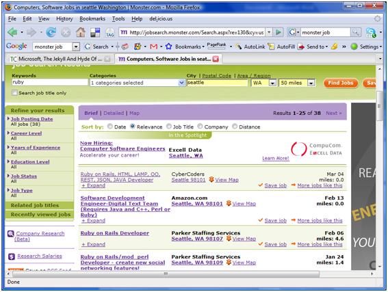 7. Finding co-workers Not sure what comes first the jobs or those qualified to perform them, but they go hand in hand. See above screenshots of Ruby jobs in Edmonton.